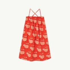 New from the Animals Observatory. Crossback strap sundress in a cherry tomato red with allover sheep print. We love this piece layered over a tee for spring, and worn on its own when the weather warms up.