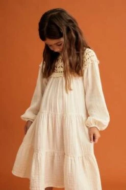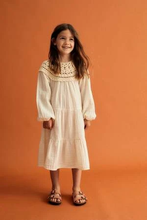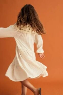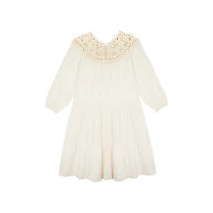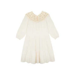 New from the New Society for Spring/Summer 2022 collection. Voluminous and flowy ivory muslin dress with intricate hand crocheted collar.