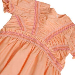 – Coloured smocking details at the neckline, waist and sleeves