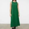 The Anoita dress in Black Sea is a beautiful easy fit midi length dress crafted from breathable TENCEL with silky twill finish. Features V-neckline with drop empire waist, front gathering and asymmetrical skirt. Slightly 3/4 length sleeves with gathering at shoulder, and inverted pleat.