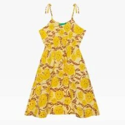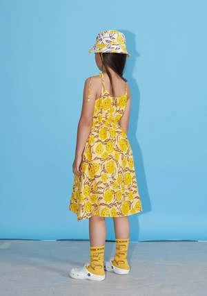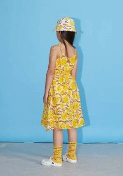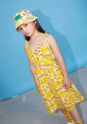 New from Weekend House Kids ‘Everything Grows With Love’ collection for Spring/Summer 2022. Kid’s sunny yellow linen strappy dress with allover mimosa floral print.