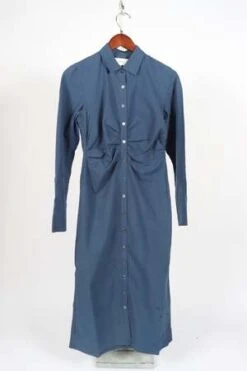 Banks is made in smooth and crisp cotton poplin. Banks is a form fitting shirt dress with a button-front, shirred waist, and back yoke.