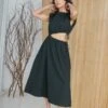 V neck, pull on, peasant sleeve, removable sash and tiered skirt